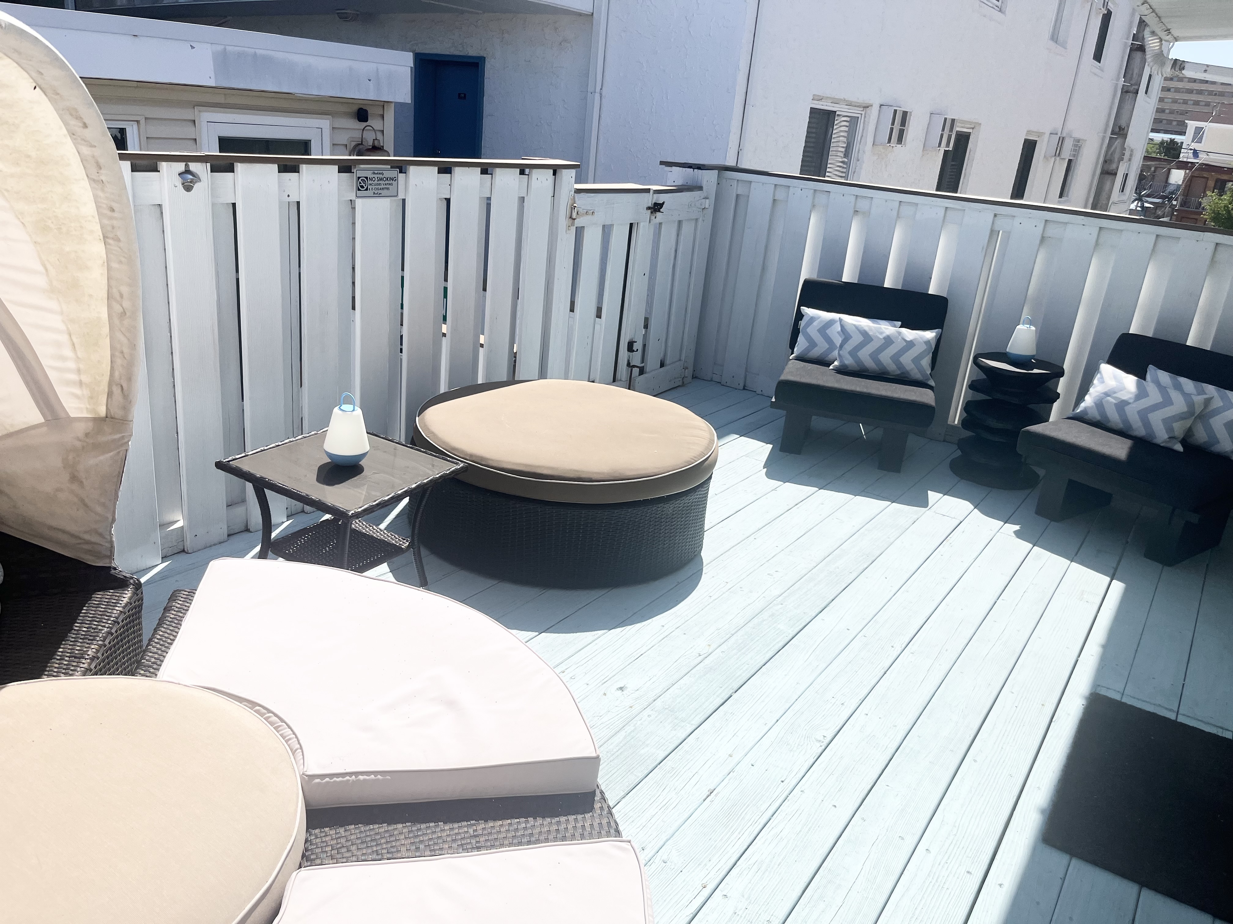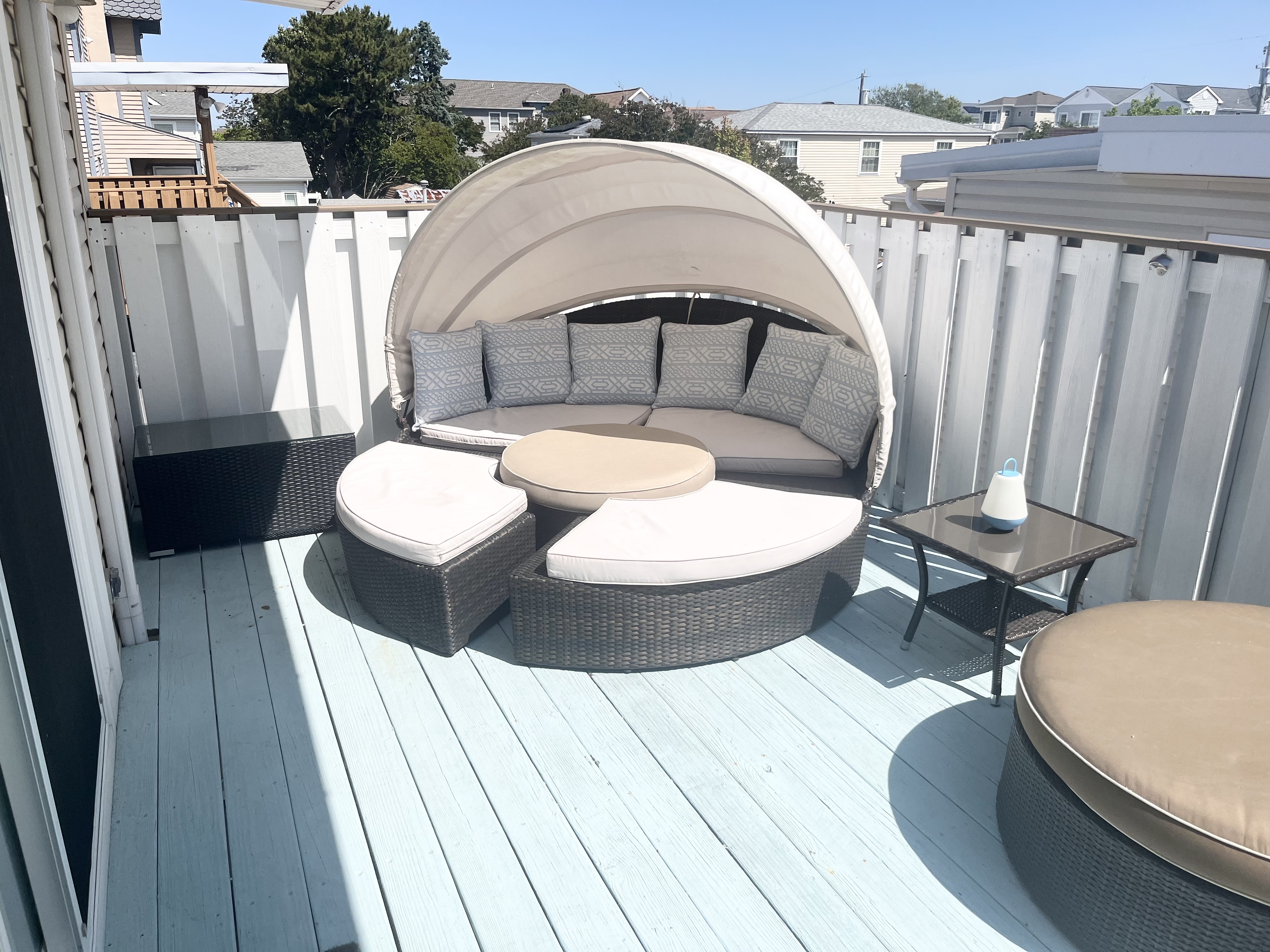 Watch the Friday Night Fireworks and the brilliant sunsets from your balcony, enjoy cocktails on the upper deck, or grill out on the back patio. Driveway parking for three cars plus an additional off-street space in front of the house.