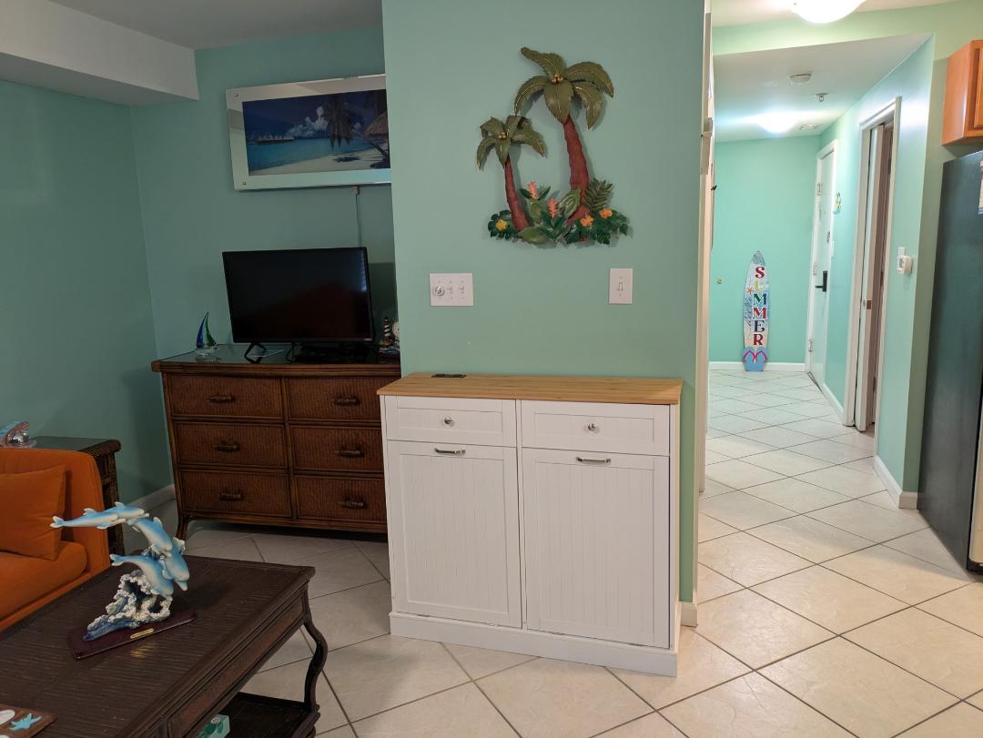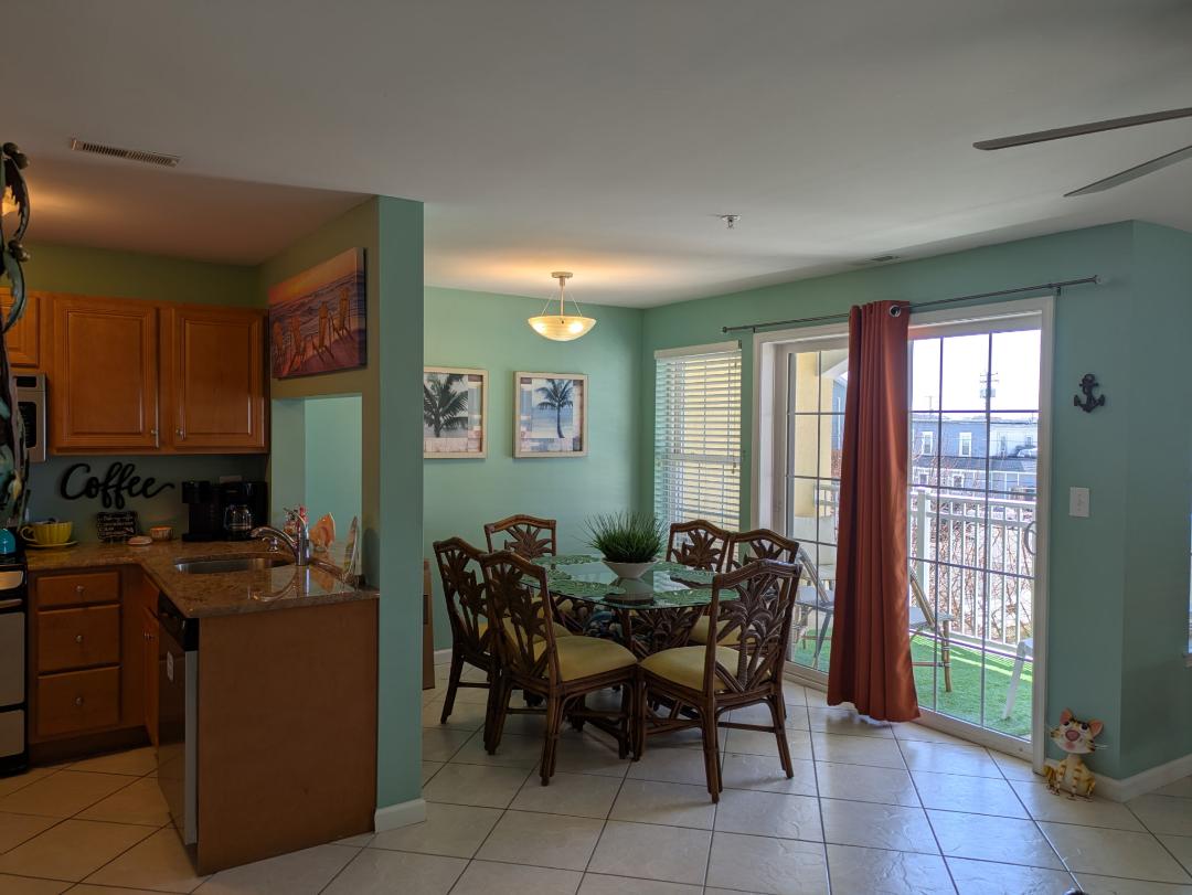 Welcome to Champagne Island Resort in North Wildwood. At the start of the entertainment district, Champagne Island Resort has a pool. Unit 105 has a balcony with seating.