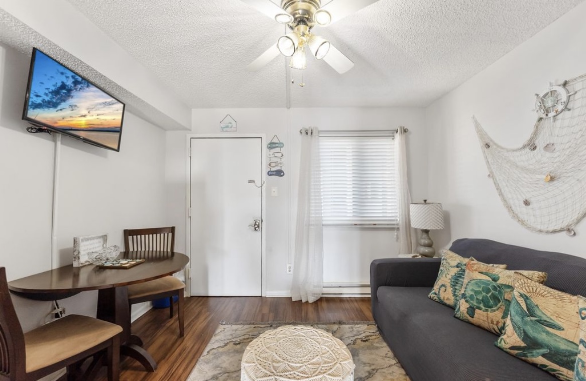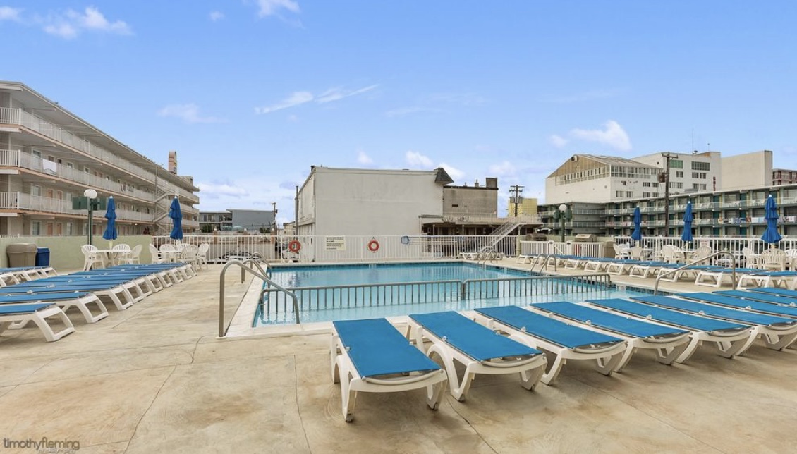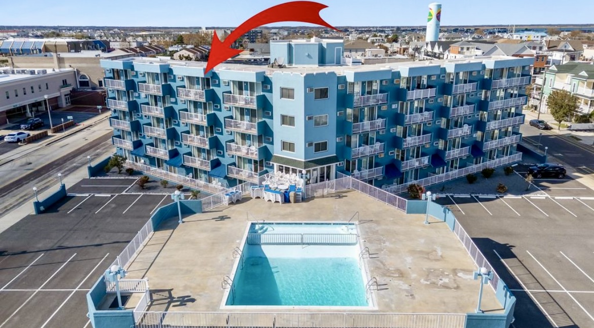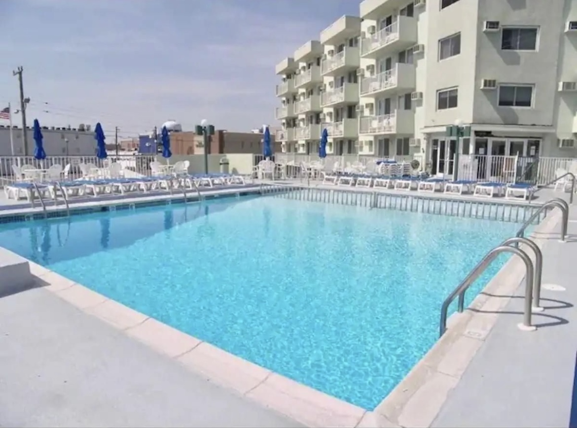 Beautiful top floor condo (penthouse), sleeps 5-6, only 1.5 blocks to the beach/boardwalk, private balcony with partial view of the ocean and front row seat to the Friday night fireworks, heated pool, bbq grills, onsite parking and so much more! Just park your car and relax, everything Wildwood has to offer is within walking distance including rides, entertainment and fabulous restaurants. Enjoy your morning coffee/evening cocktail from the balcony with some spectacular views!