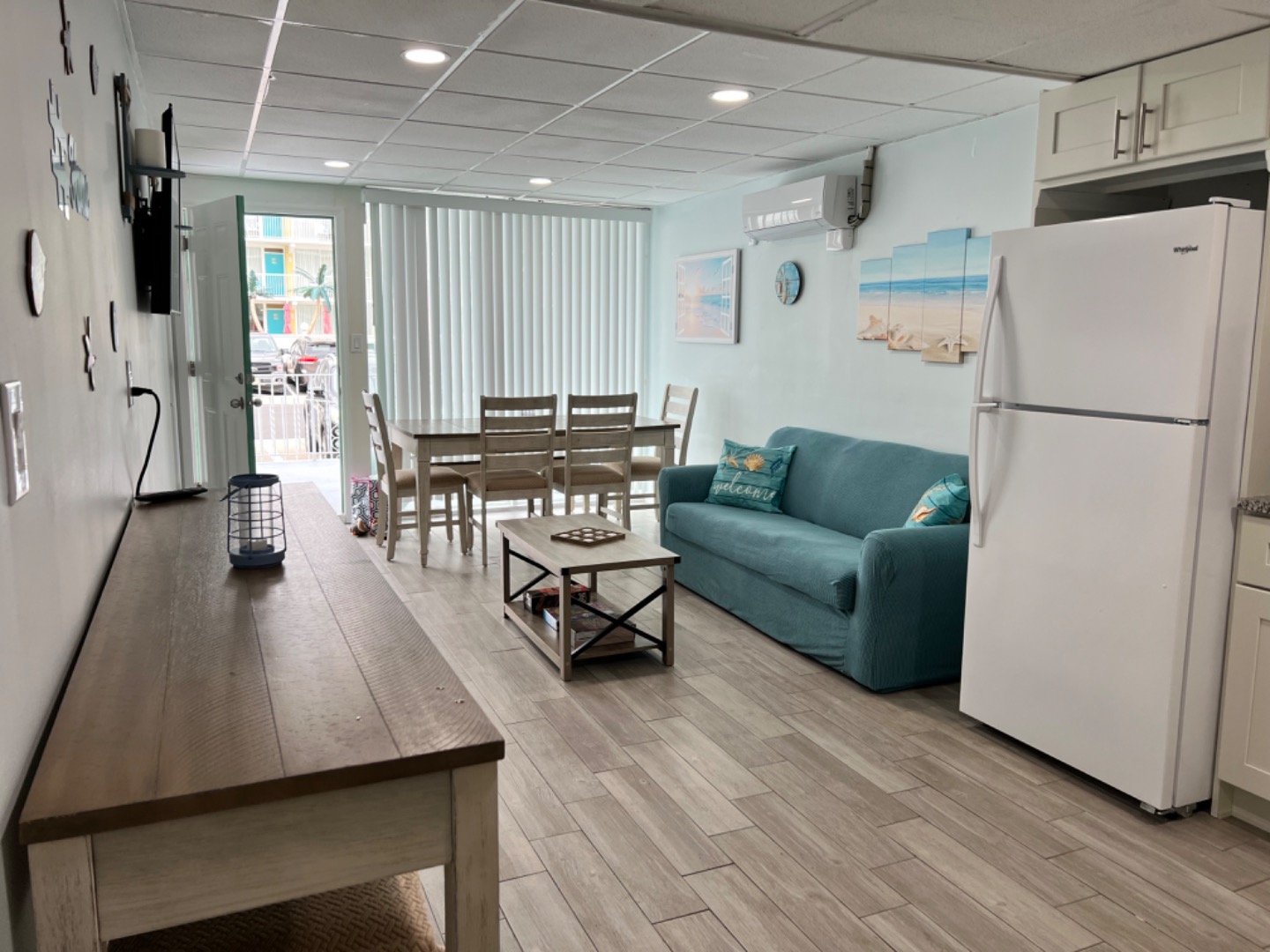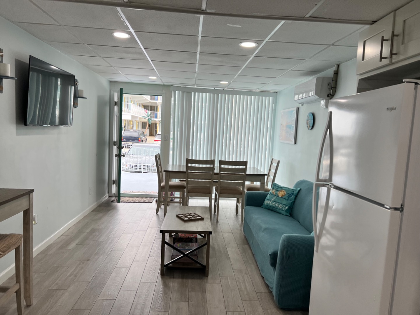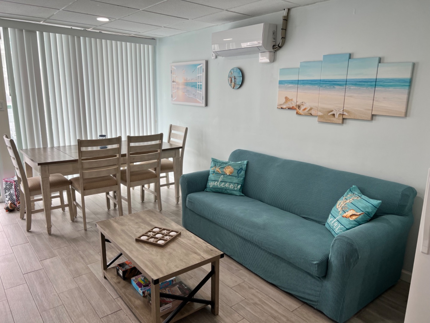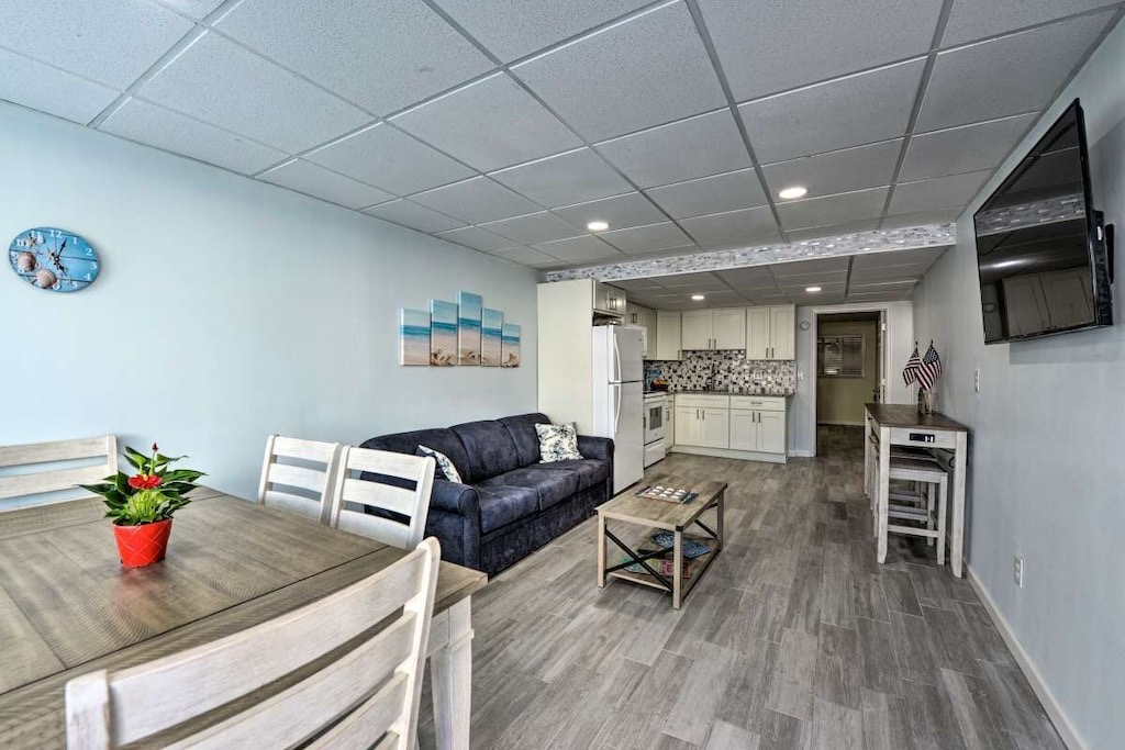 Experience the sun and surf of the New Jersey coast at this lovely vacation rental. With access to Wildwood Crest Beach just outside the front door, this 2 bedroom, 1-bathroom condo is the perfect sun-soaked escape. In the evenings, end things on a high note with a dip in the heated pool and a meal prepared in the well-equipped kitchen.