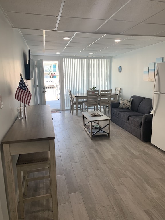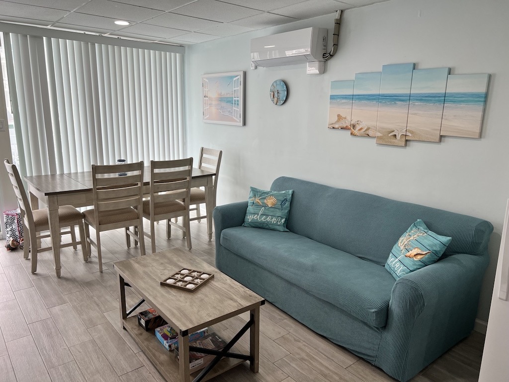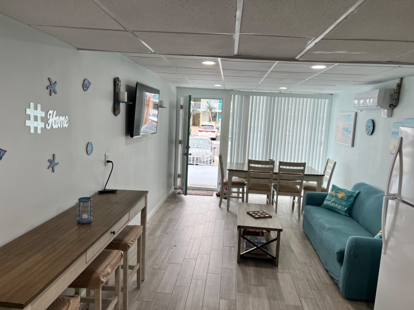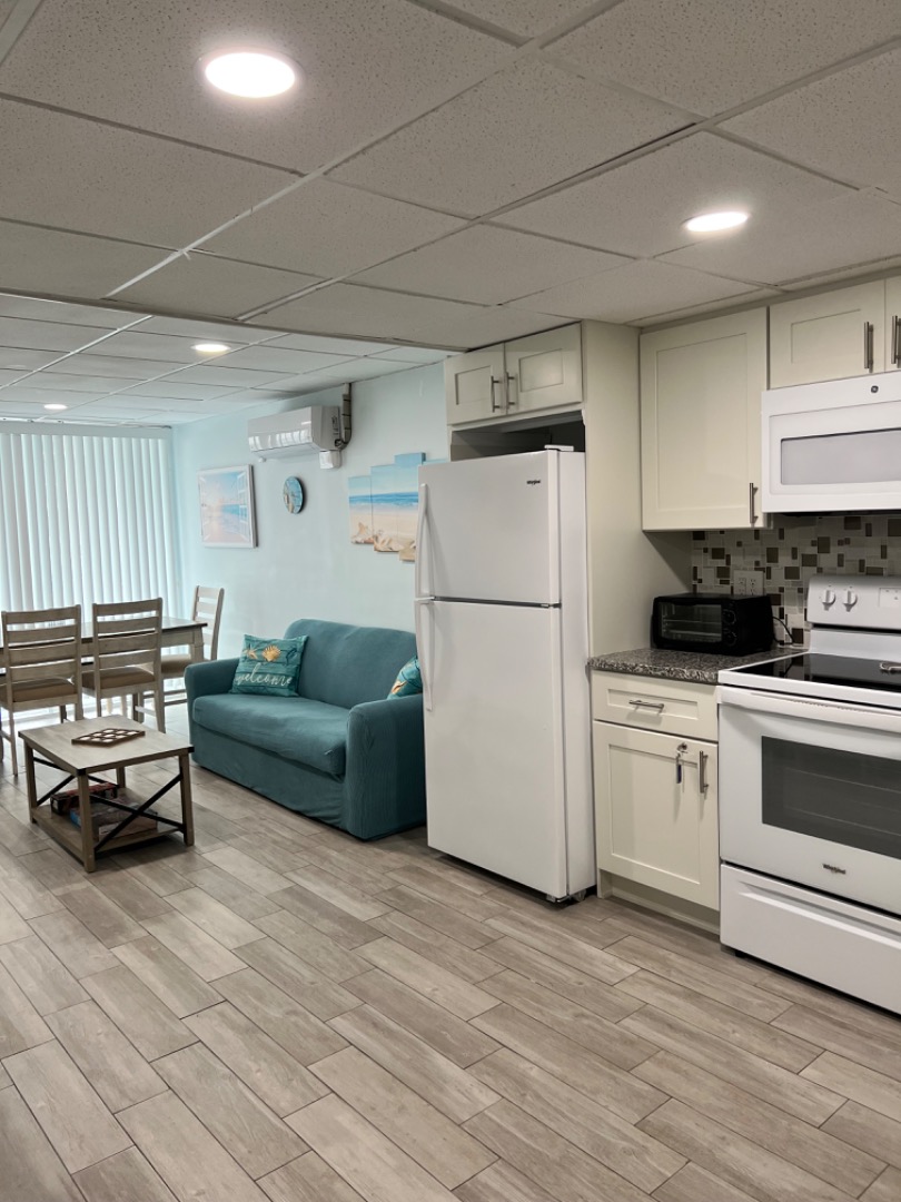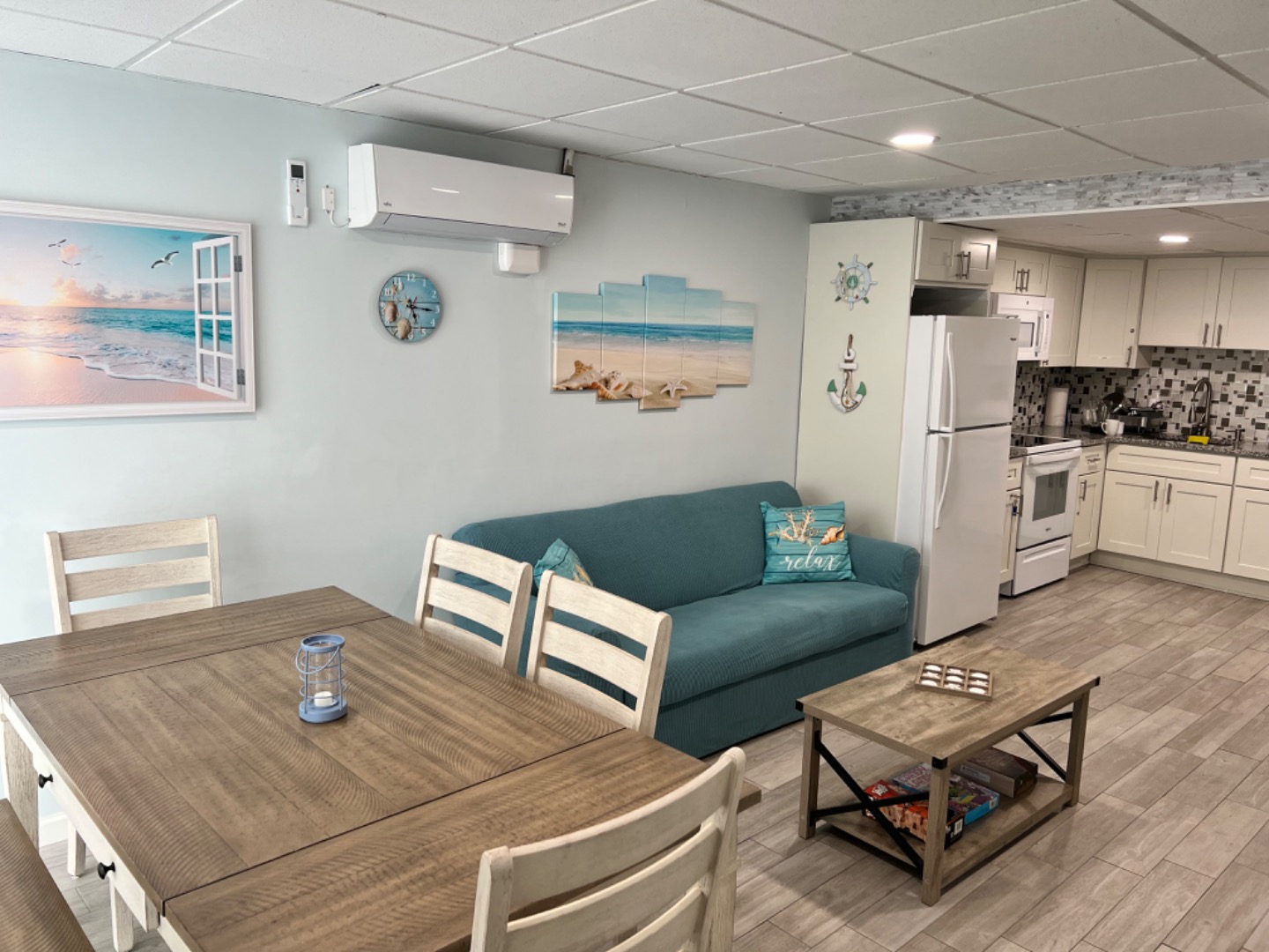 Experience the sun and surf of the New Jersey coast at this lovely vacation rental. With access to Wildwood Crest Beach just outside the front door, this 2 bedroom, 1-bathroom condo is the perfect sun-soaked escape. In the evenings, end things on a high note with a dip in the heated pool and a meal prepared in the well-equipped kitchen.