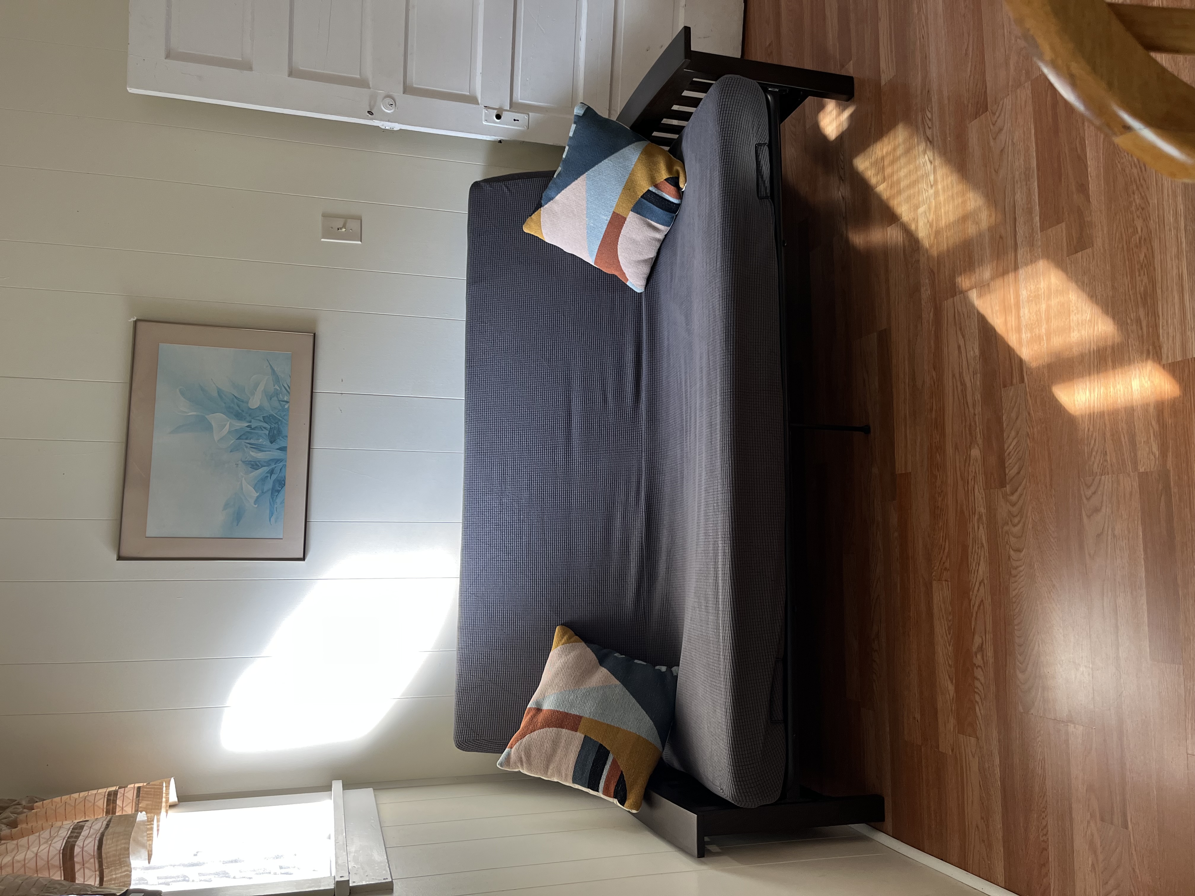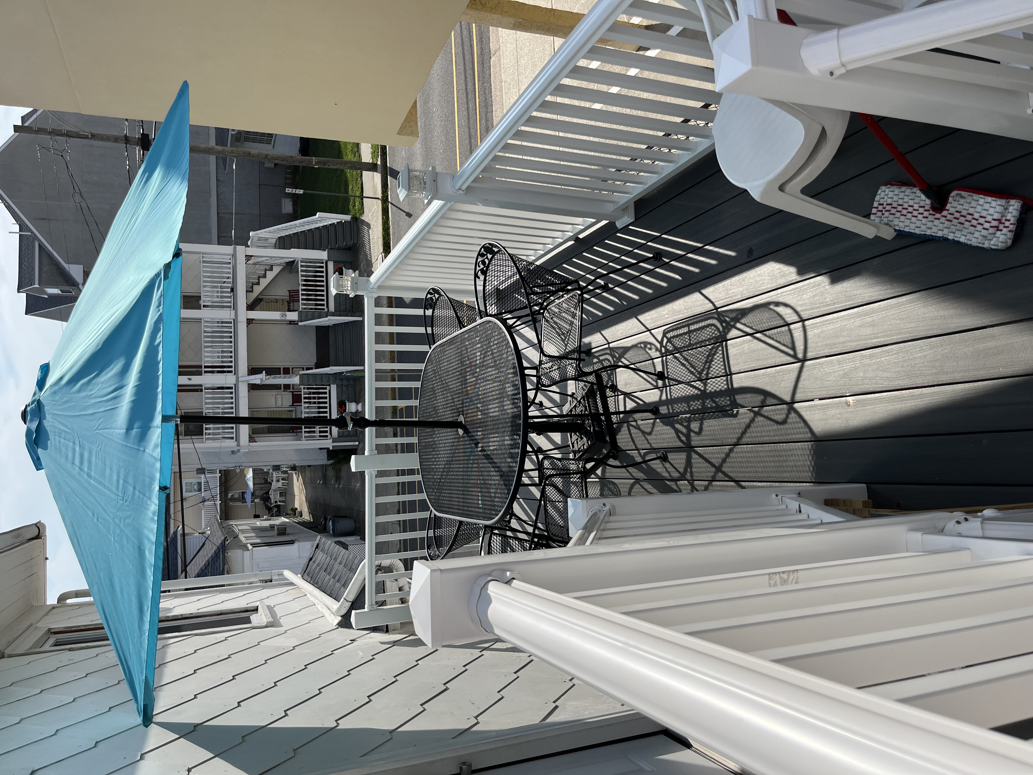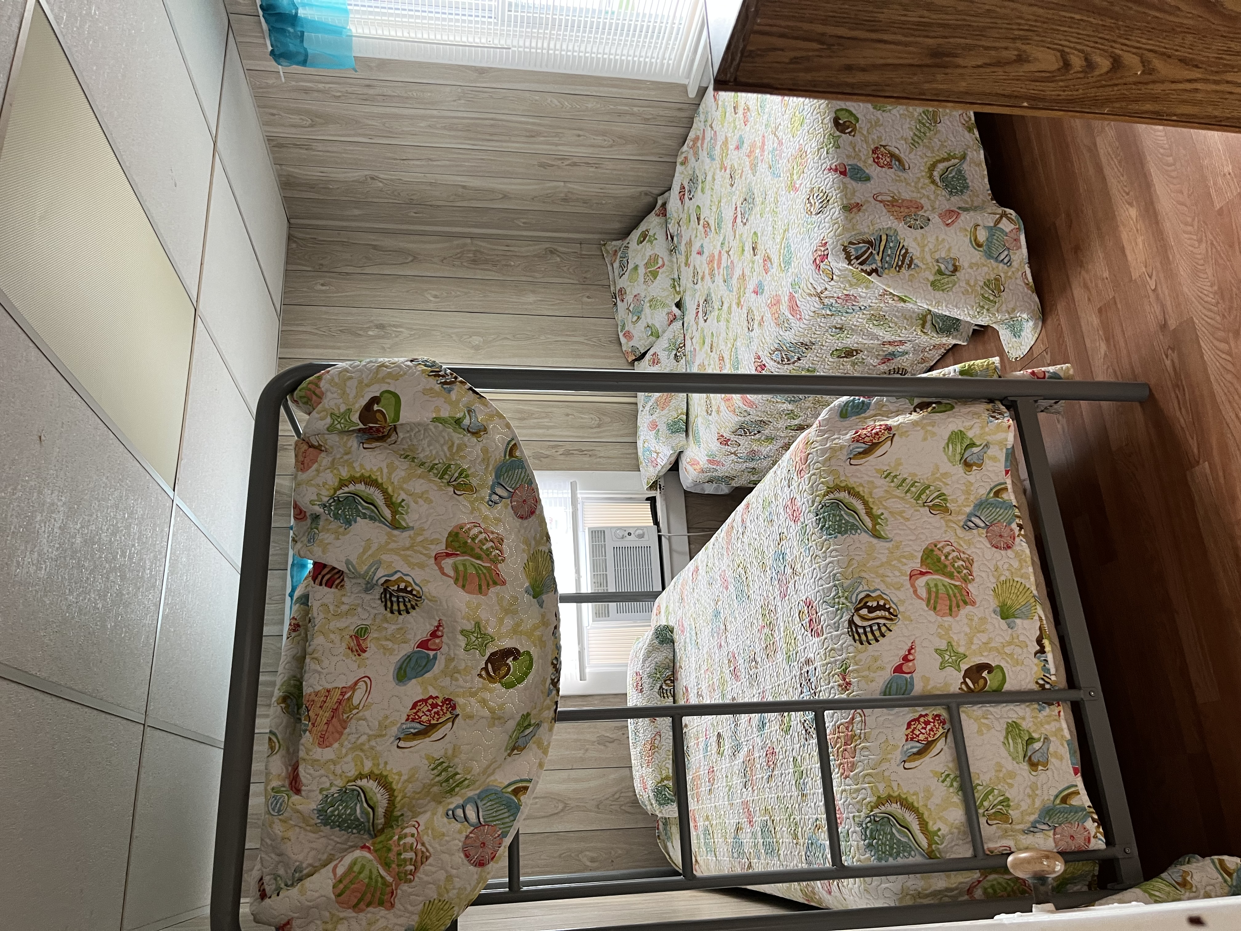 Two bedrooms. One bathroom. Second floor, and also has a deck with a table, chairs and an umbrella. Sleeps 10! Located close to the beach and boardwalk and many restaurants including Sam's pizza! This apartment is part of a single-family home that offers two other units as well. First bedroom has 2 full beds, and the second bedroom has twin bunk beds and a full bed .Living room with a full futon. There is a galley kitchen and dining area as well.