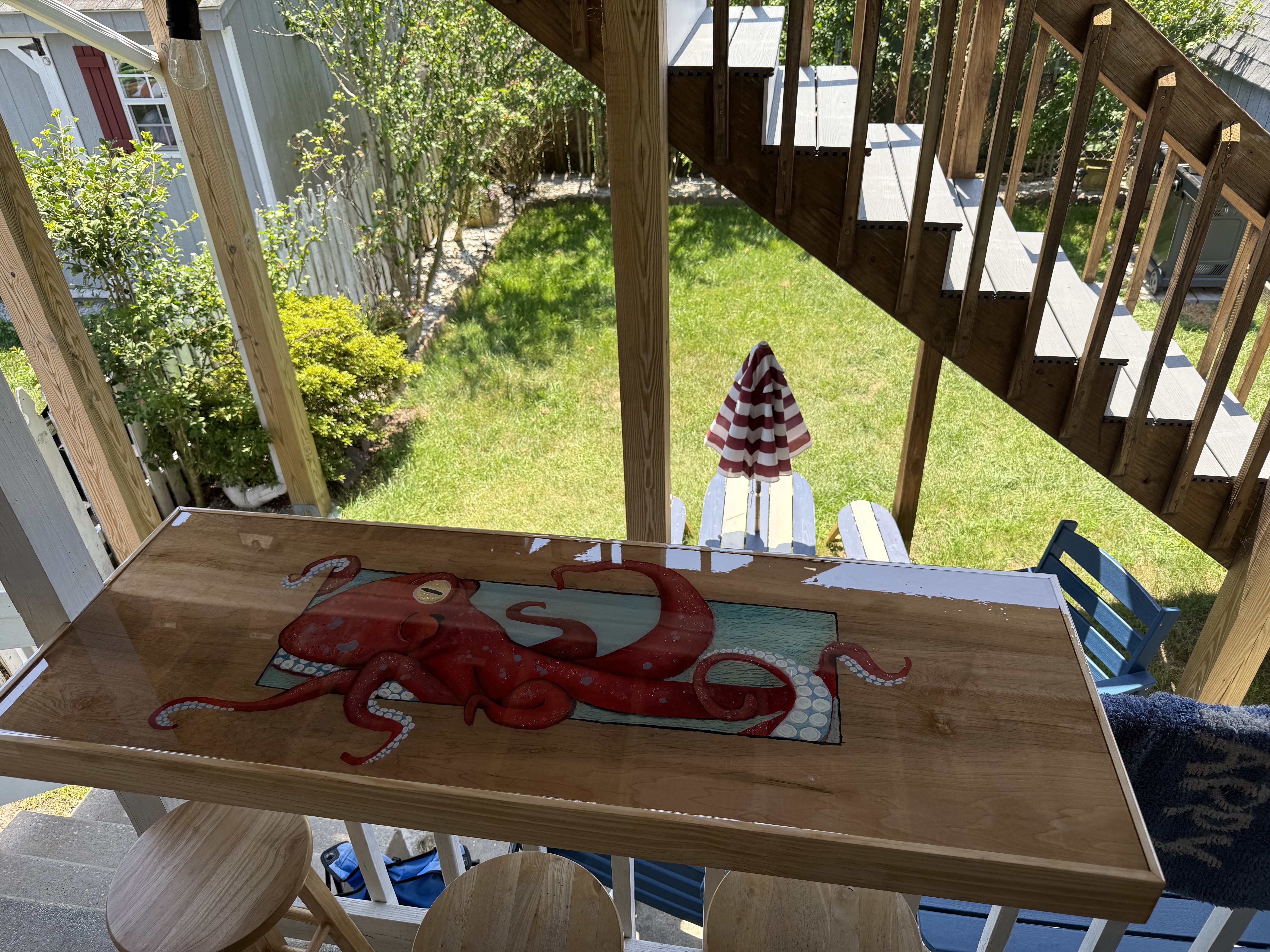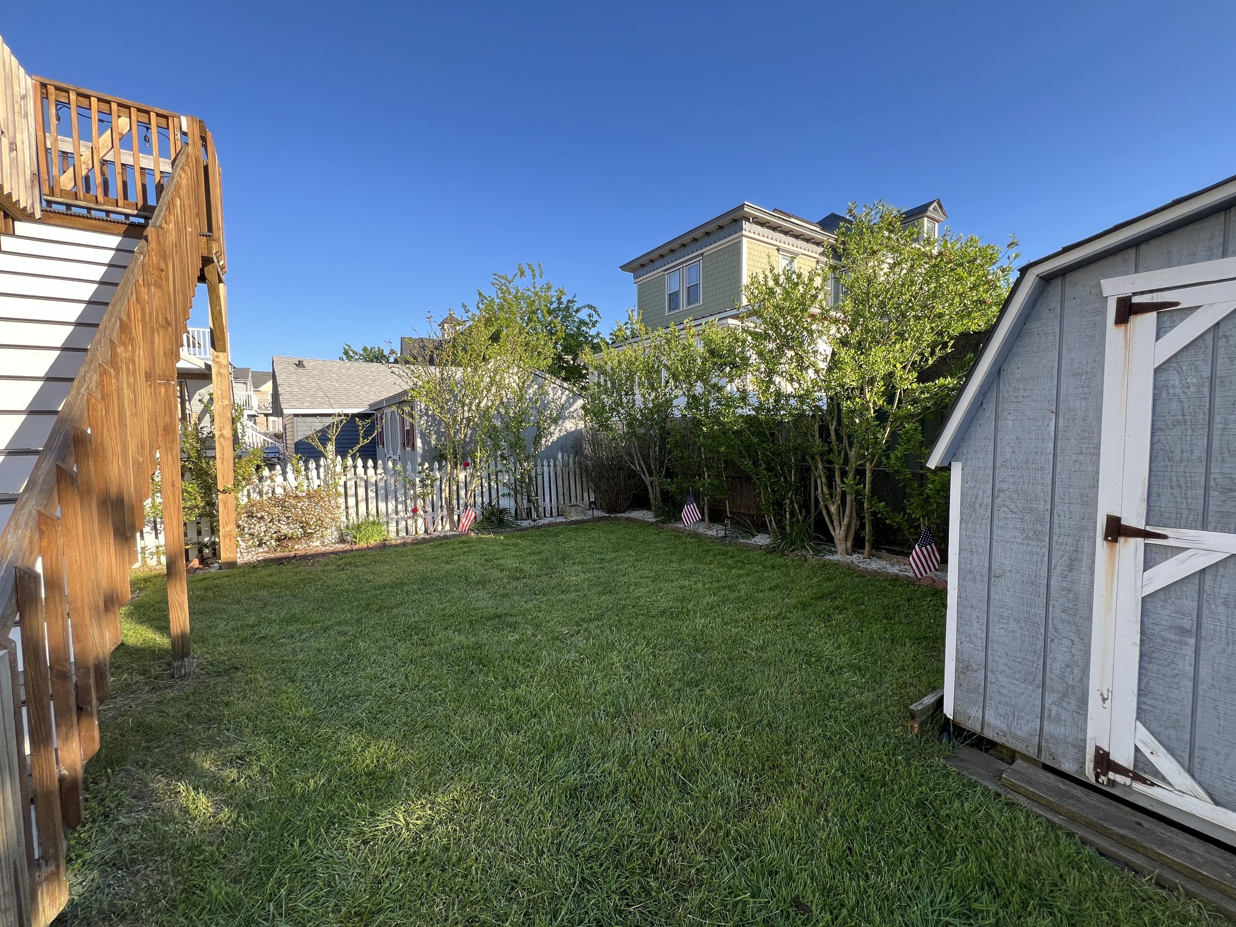 Great for extended families. Outdoor space is fully fenced in with seating on upper deck and lower patio.