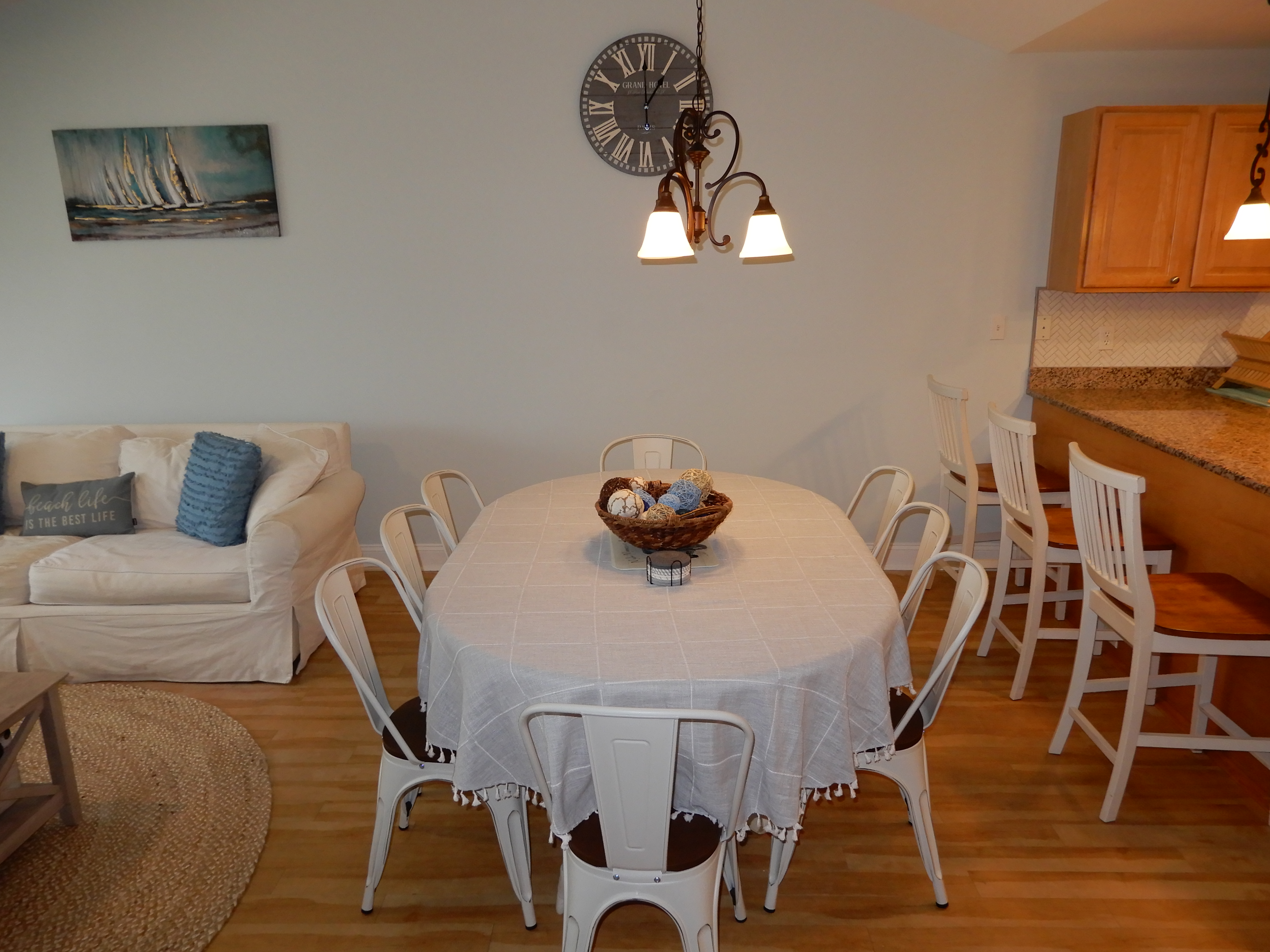 Posted weekly rates include linens, bath towels, freshly laundered comforters/spreads, a starter supply of paper products, and cleaning upon departure.