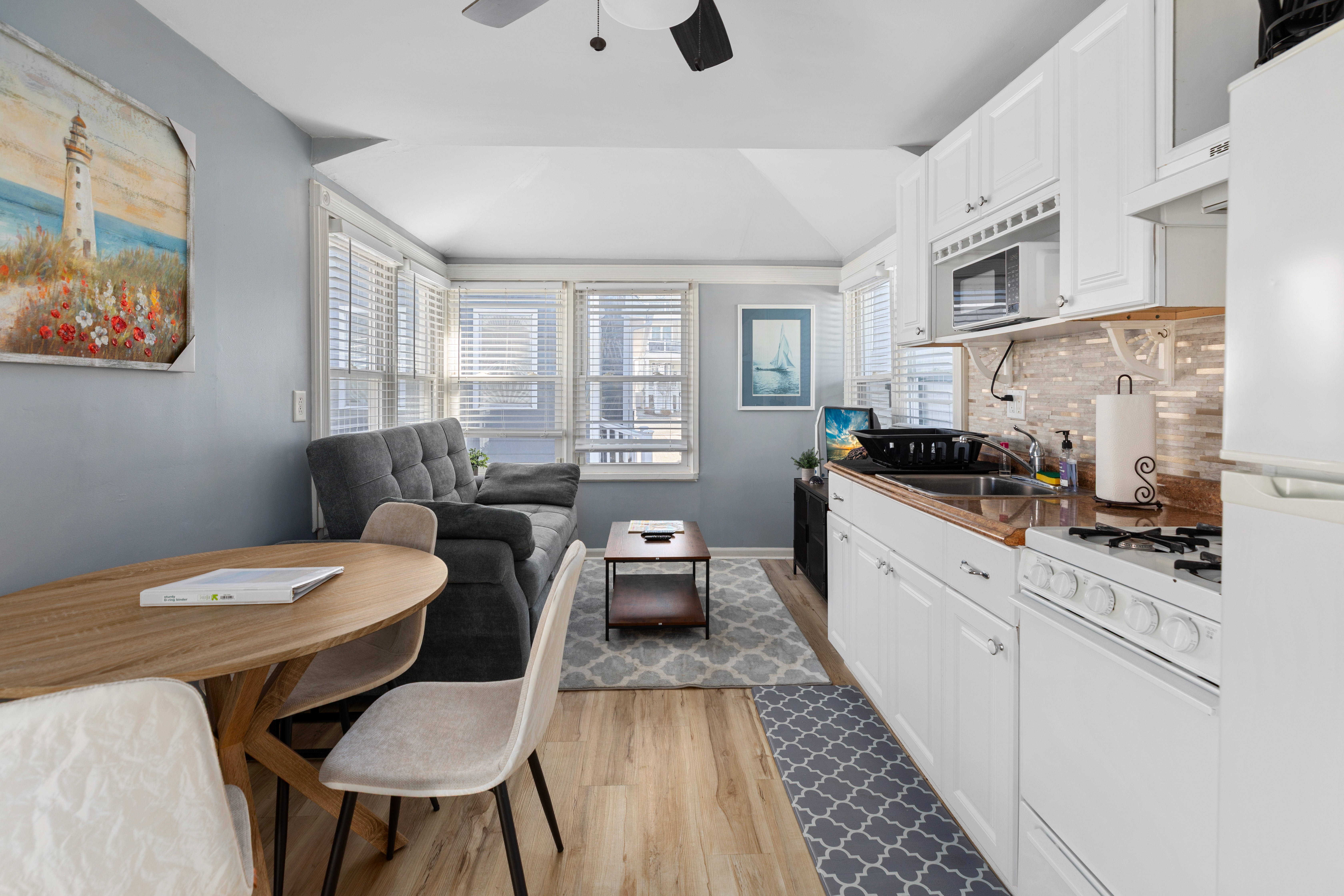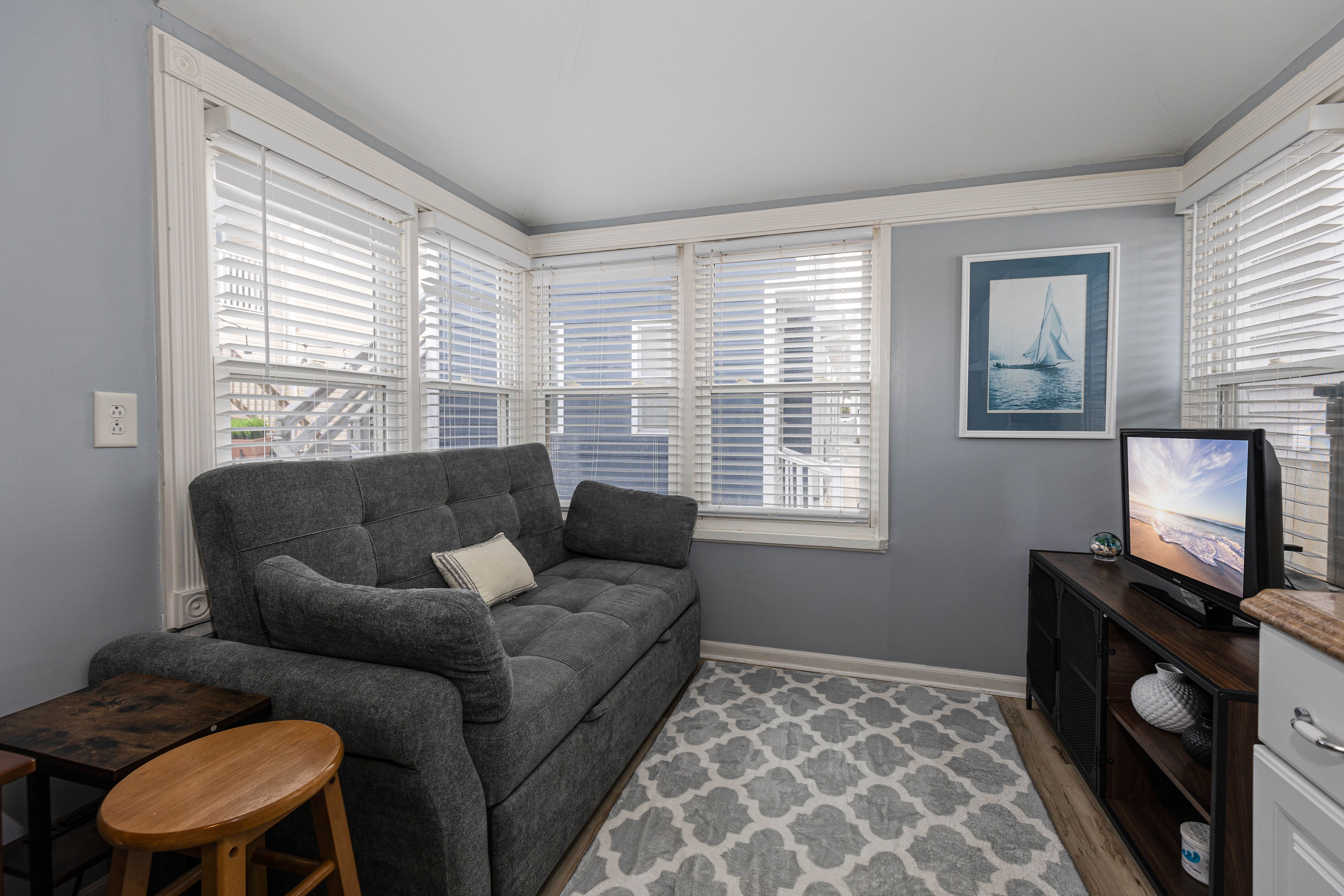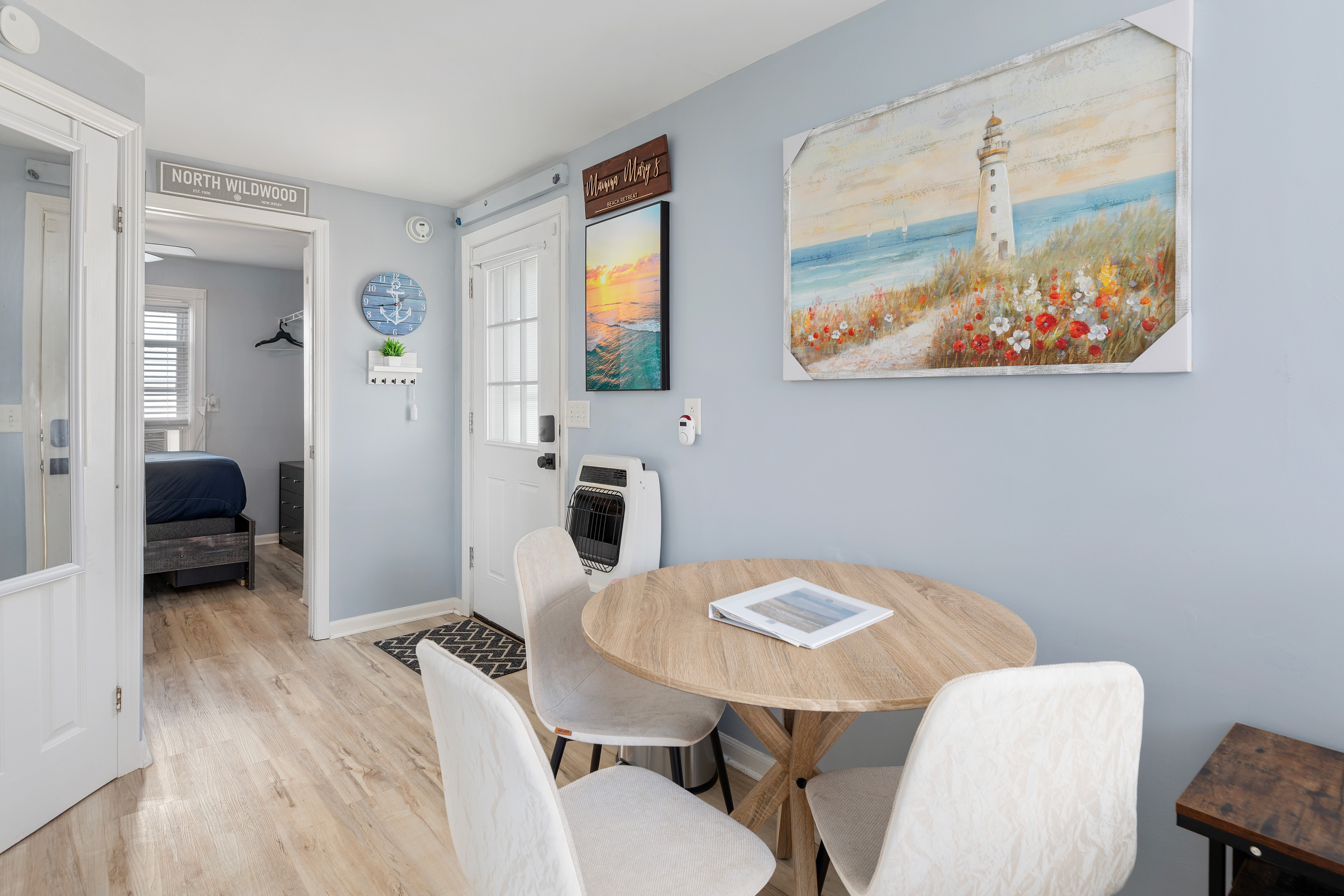 Mamma Mary’s Beach Retreat is a charming rear cottage designed for couples or small groups seeking a peaceful Jersey Shore getaway. Thoughtfully arranged and full of character, this 1-bedroom, 1-bath cottage offers comfort, privacy, and an unbeatable North Wildwood location.