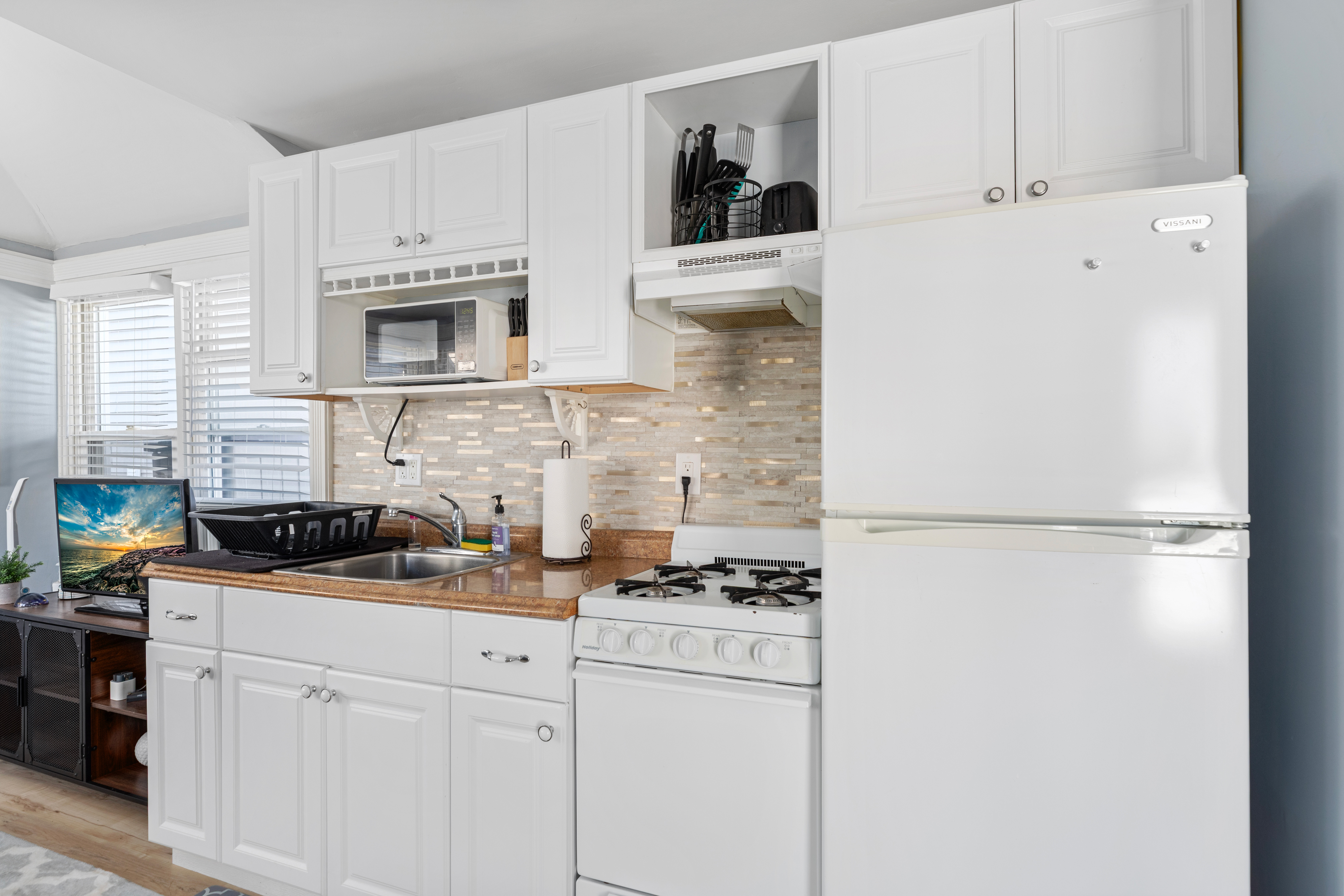 The kitchen features:
