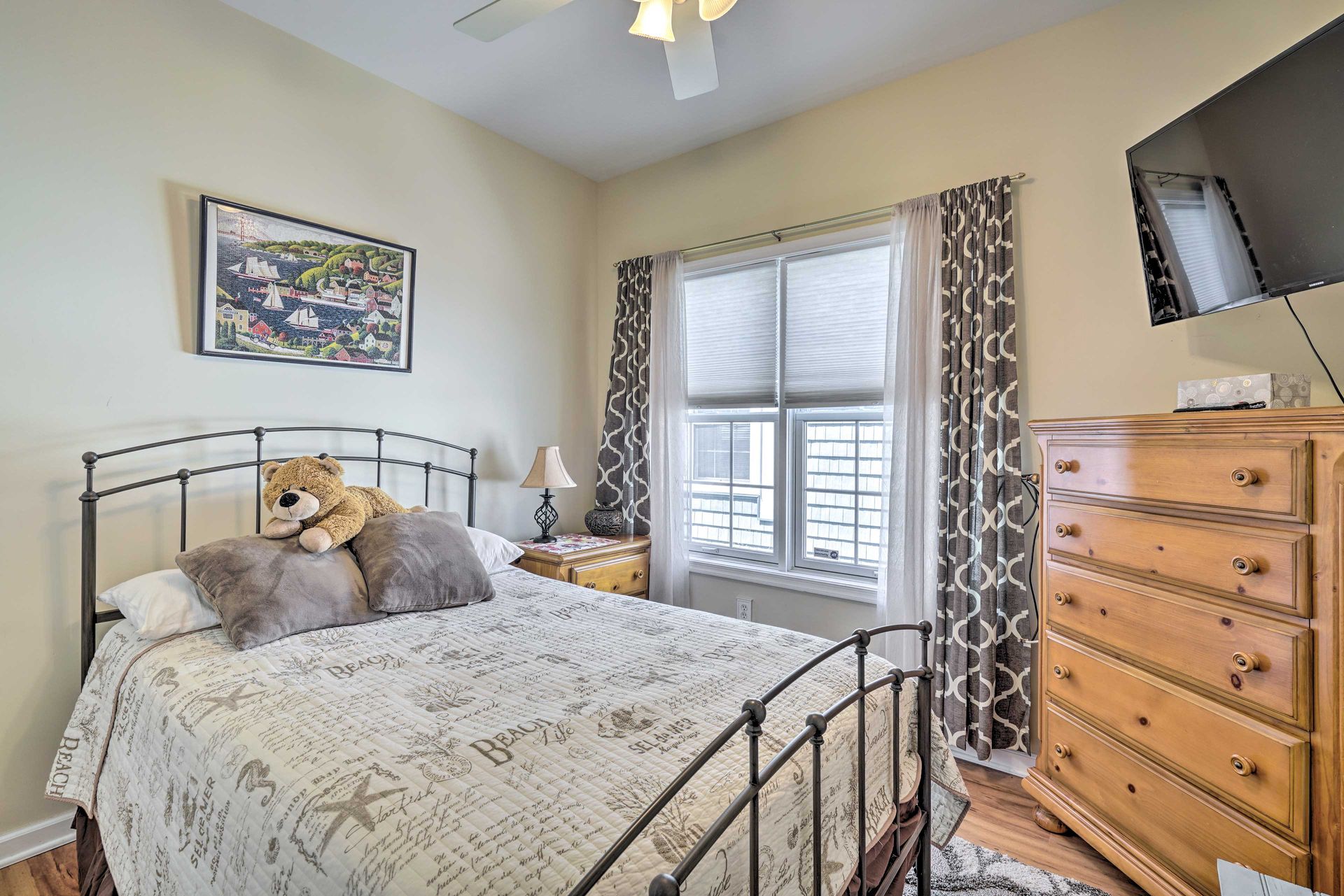 Embark on a relaxing family trip filled with sunshine, sand, and plenty of oceanside adventure at this Wildwood vacation rental! Located just a short walk from Wildwood Beach, this 3-bedroom, 2-bath condo features a full kitchen, central A/C, beachy decor, an en-suite bathroom, a cozy balcony, and a sparkling seasonal pool. Get out and explore local attractions like the Wildwood Boardwalk, the Seaport Aquarium, and the Cape May Lighthouse! Make this delightful condo your vacation HQ — book now.