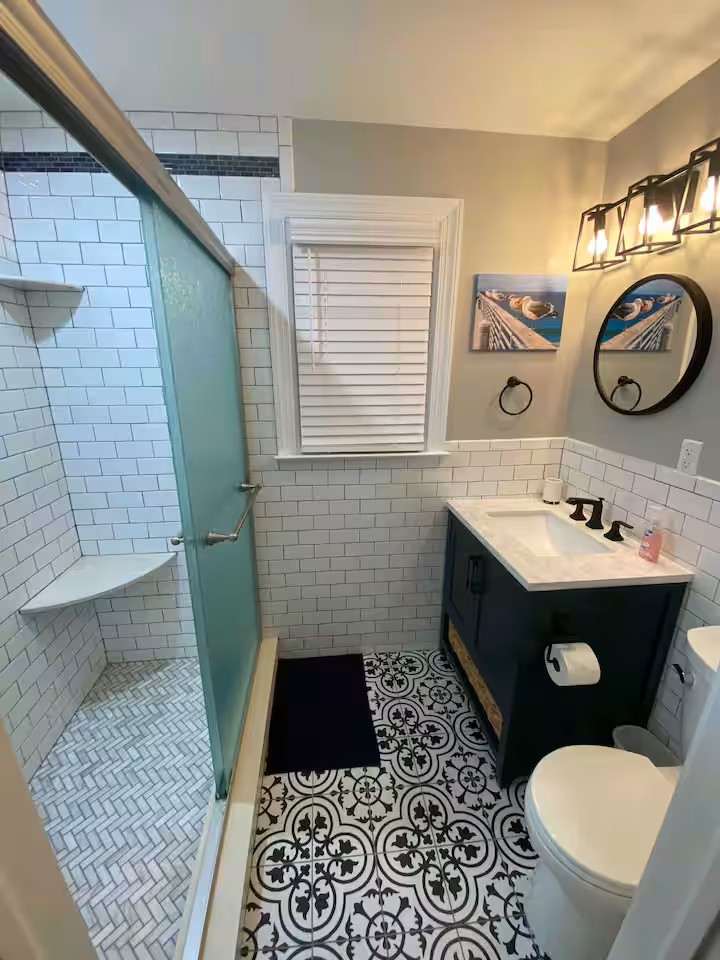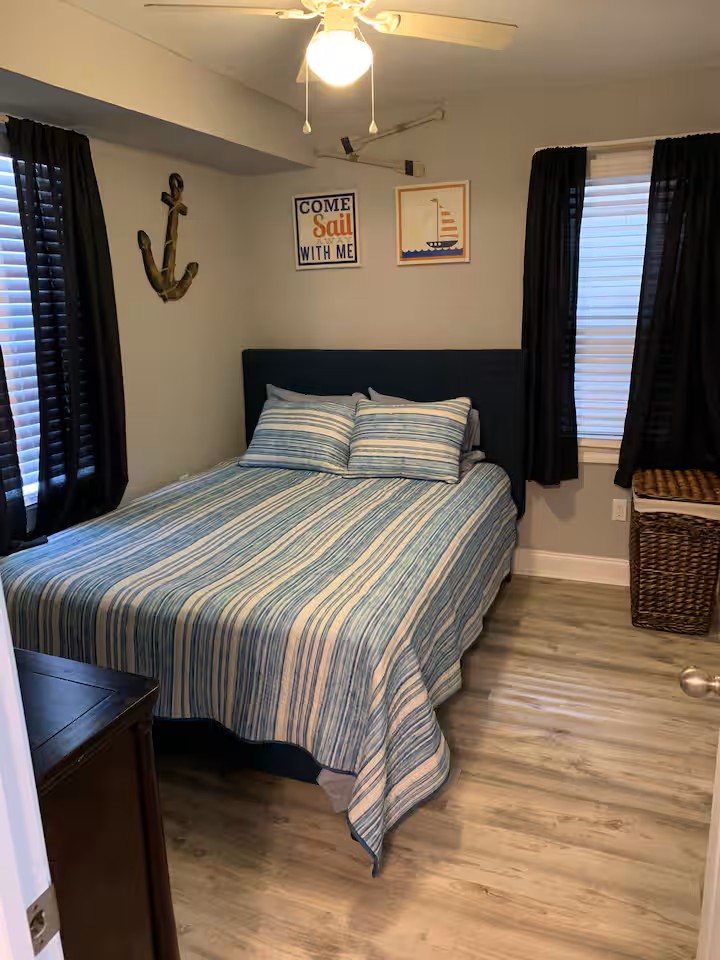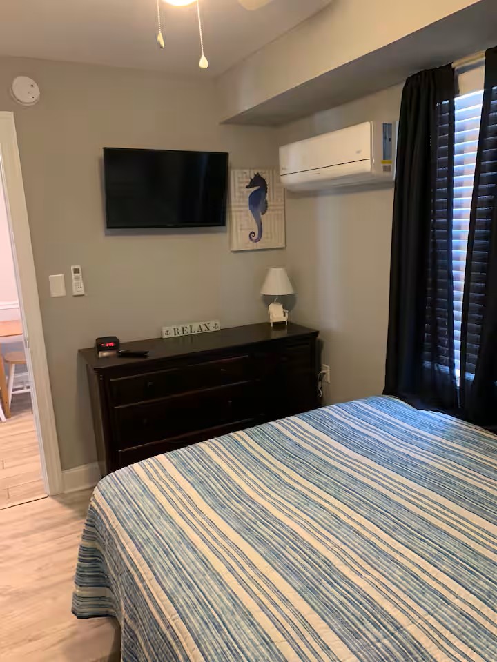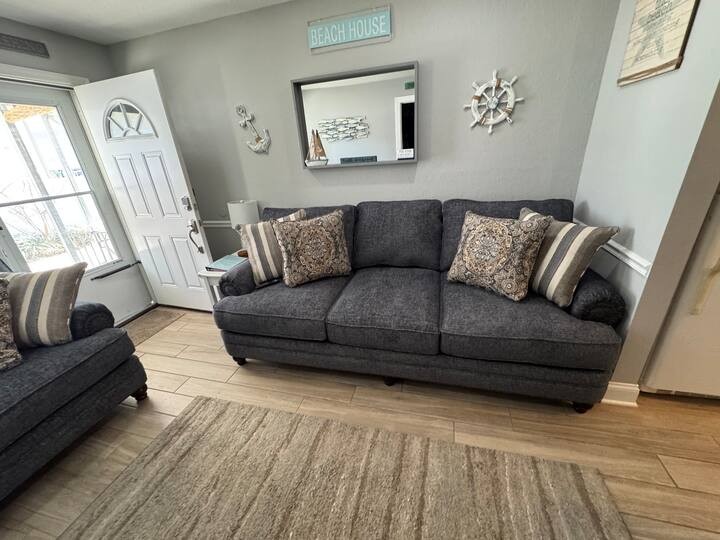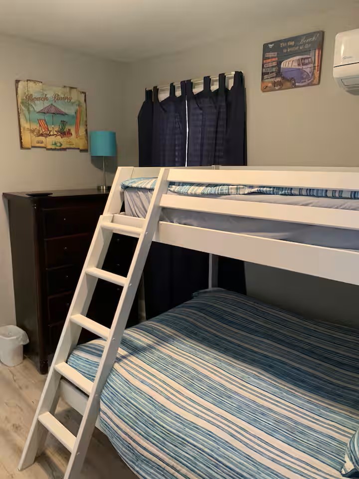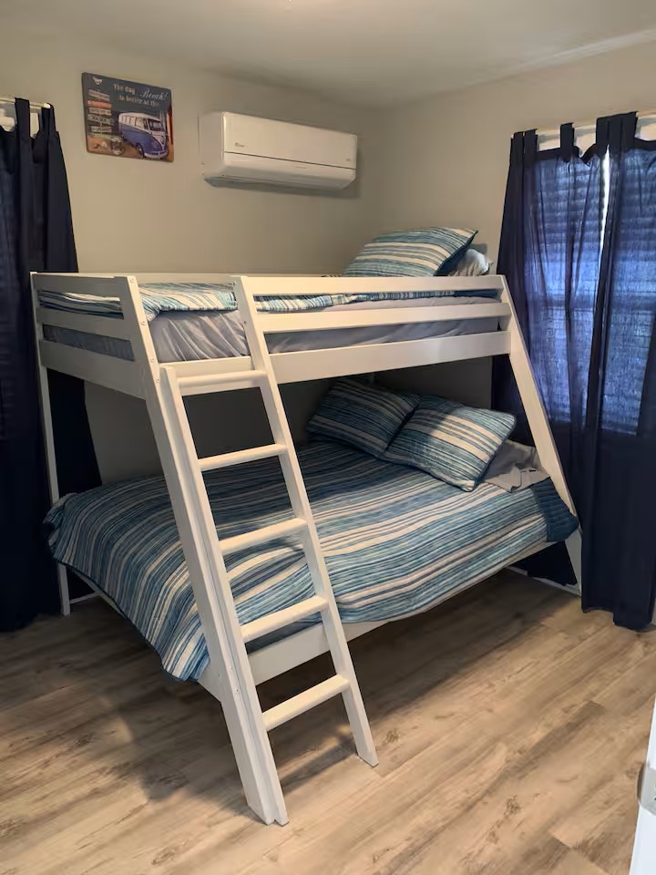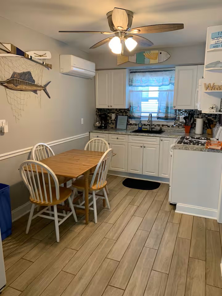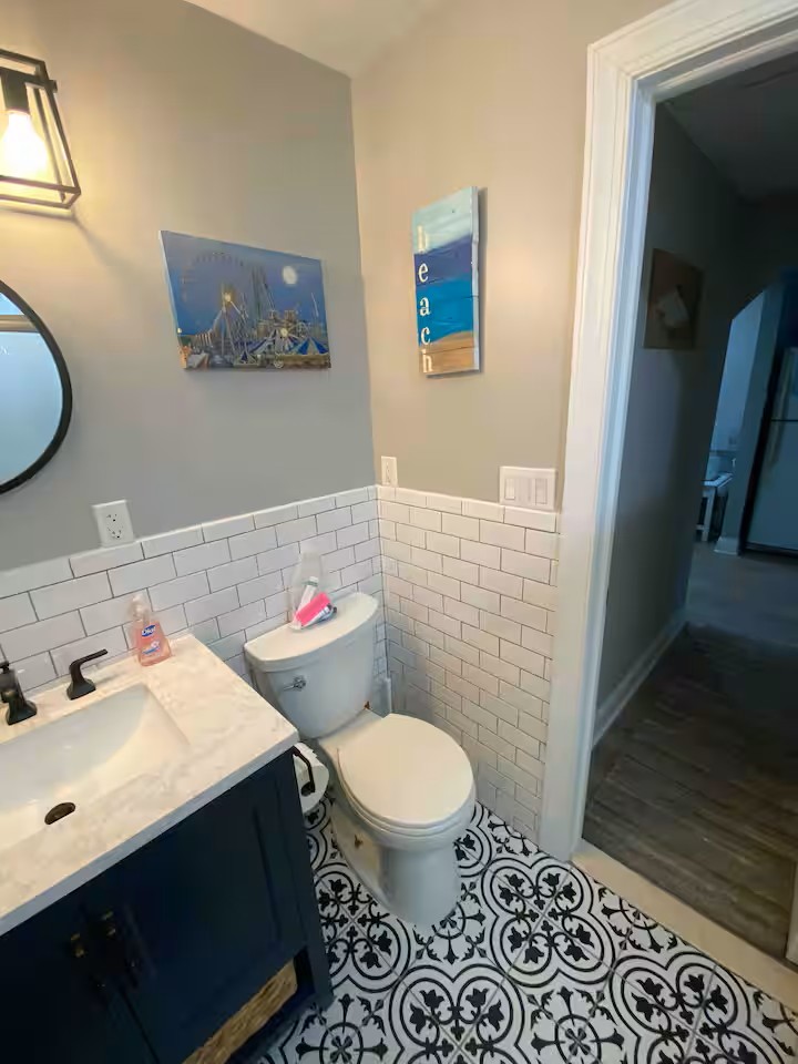 Our condo is on the smaller side, but the decor, cleanliness, and proximity of all of WildWoods best features, make up for the size! There are two bedrooms (1 queen,2 full,1 twin), a full size kitchen, living room, bathroom and a nice sized deck! Perfect spot for a family vacation! Our property is equipped with security cameras outside only, that we are able to view at all times, for safety issues or concerns.